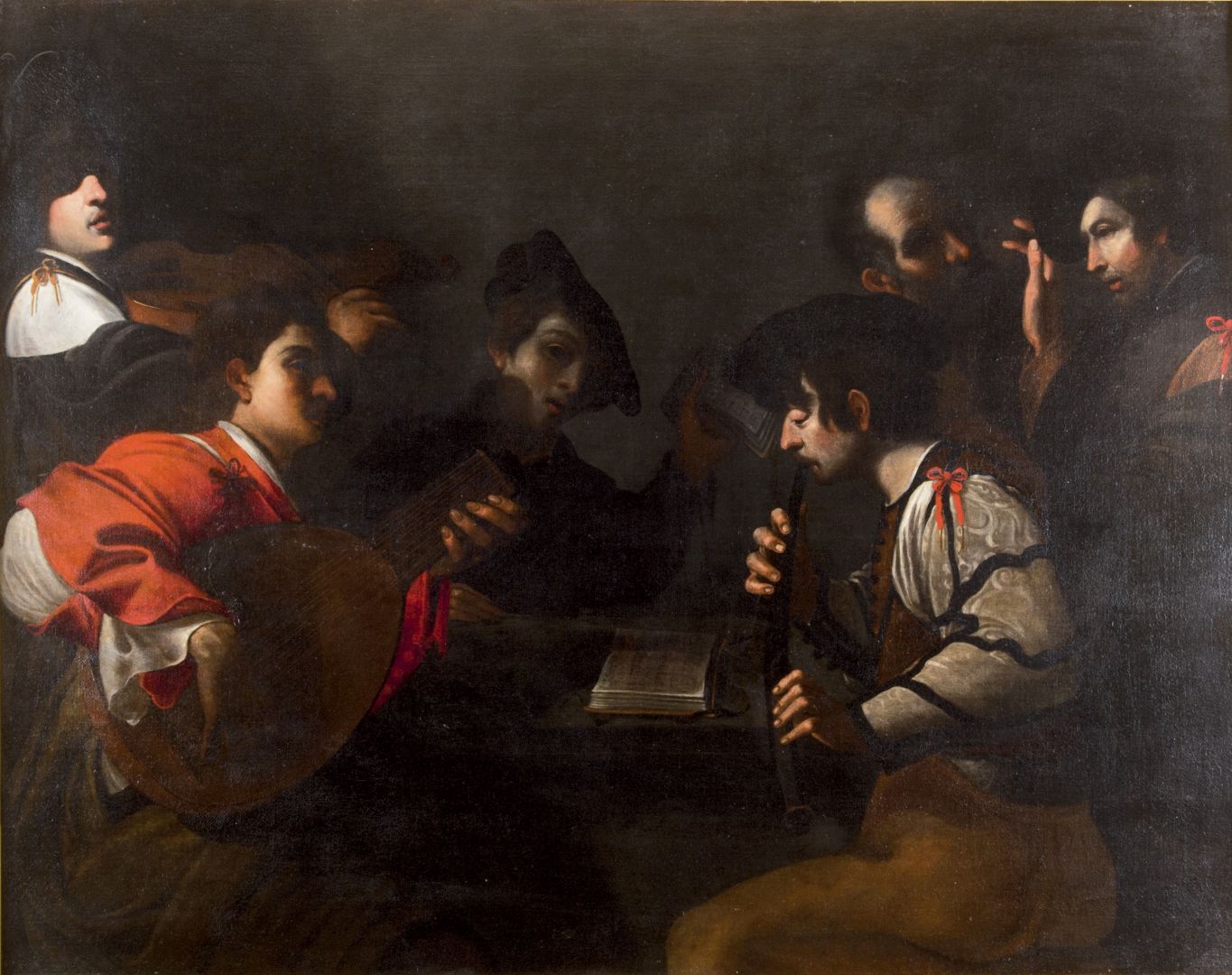 PITTORE CARAVAGGESCO CERCHIA BARTOLOMEO MANFREDI Concerto Olio su tela cm 97...
