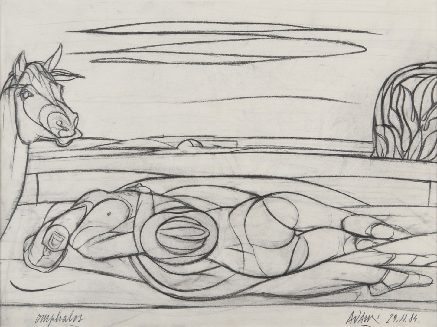 VALERIO ADAMI Bologna 1935 Omphalos 29.11.1984 Matita grassa su carta cm 35 x...