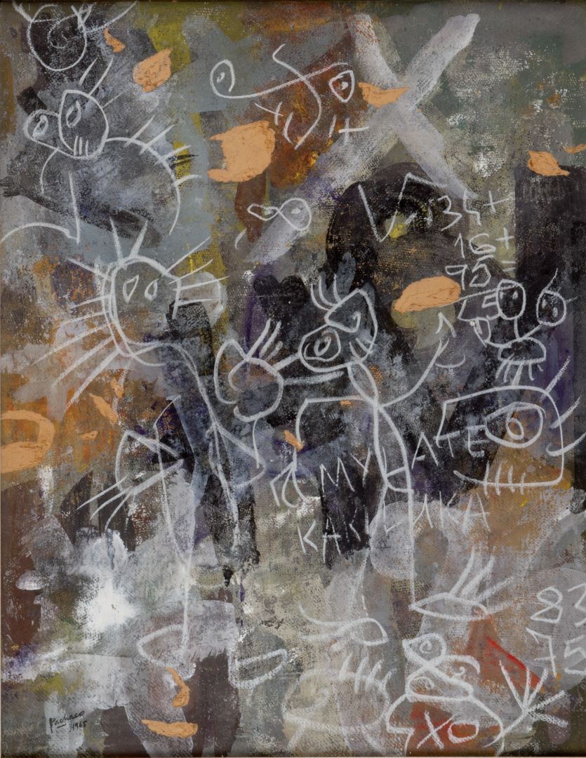 JULIAN PACHECO Cuenca 1937 - 2000 Segni 1965 Tecnica mista su cartoncino cm...