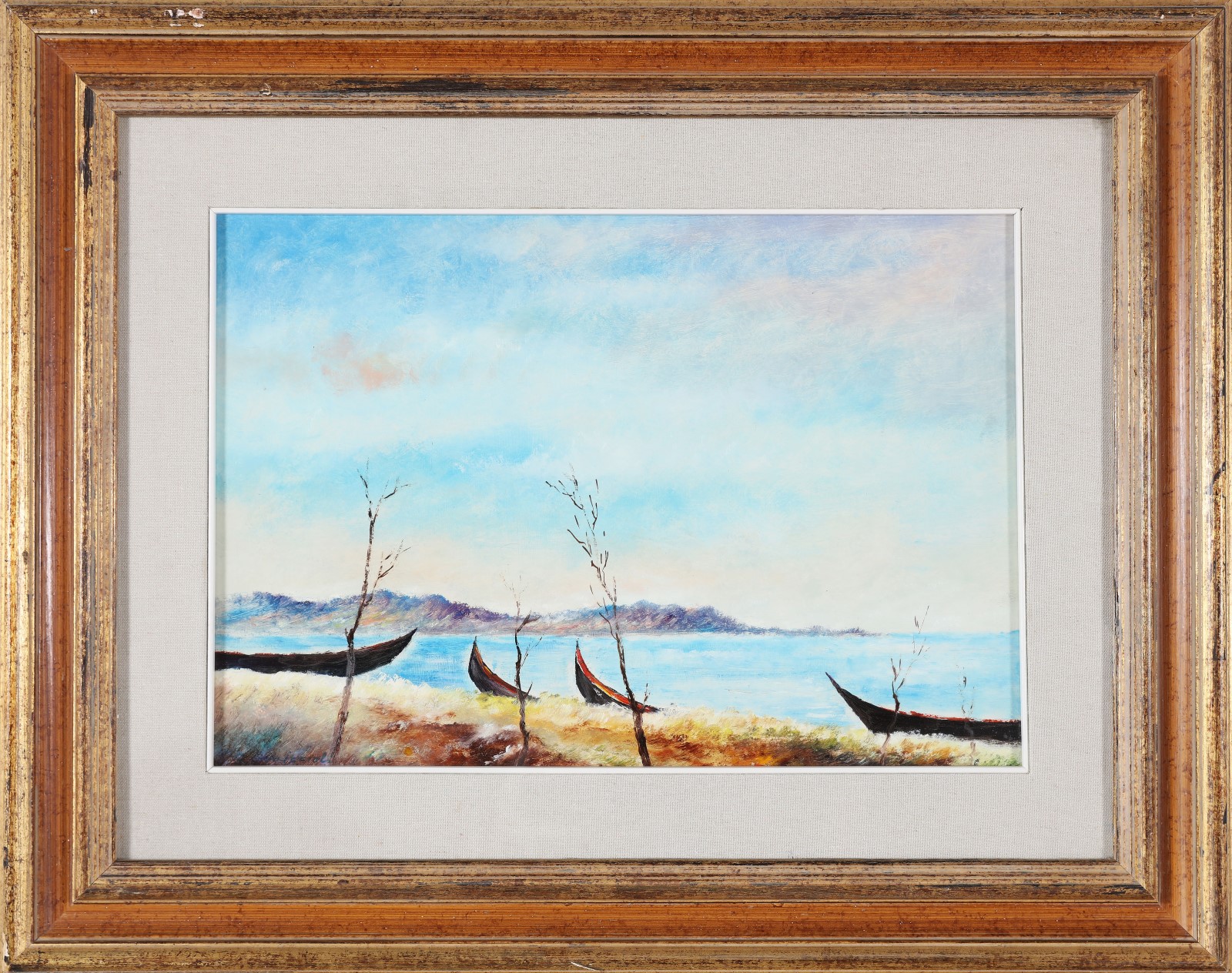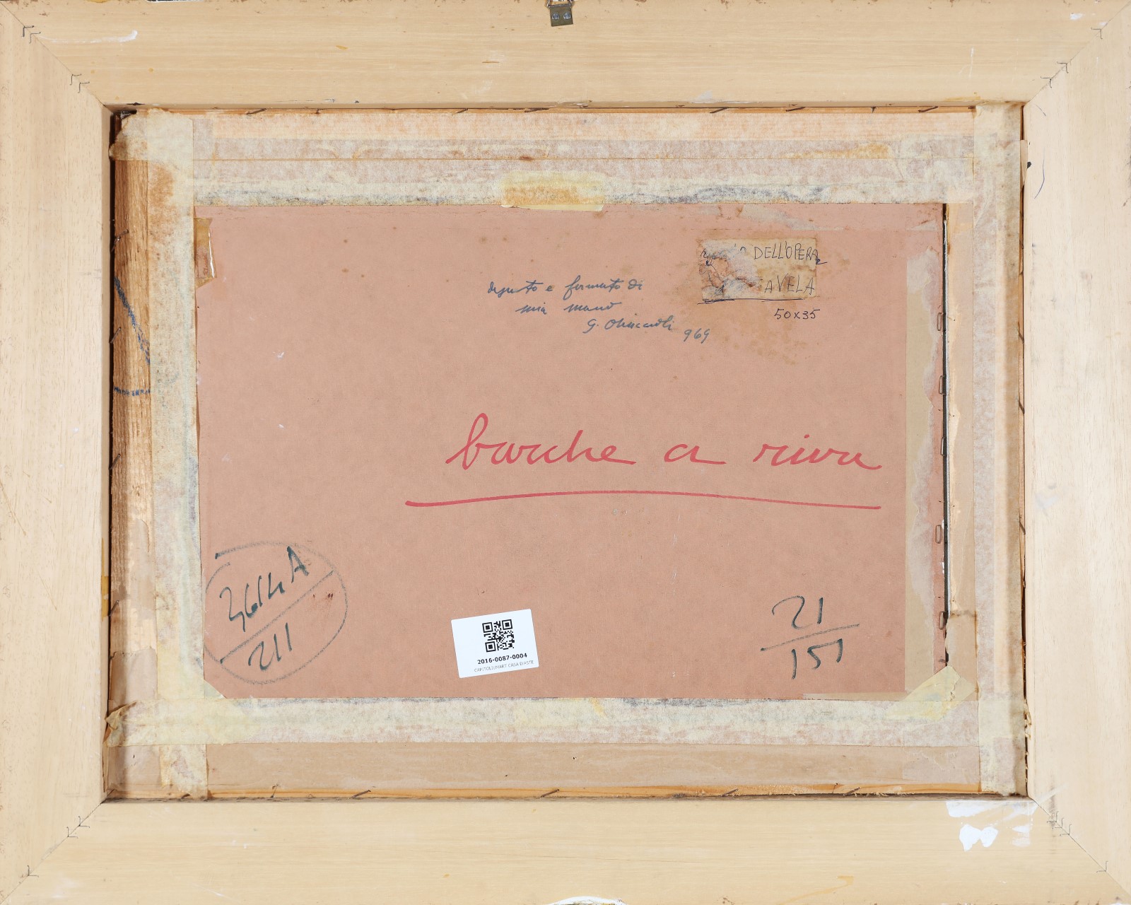 Lot 19 | OMICCIOLI GIOVANNI (1901 - 1975) Barche a riva. 1969. Olio su cartone. Cm...