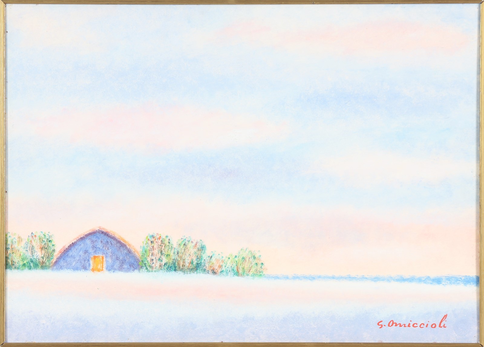 OMICCIOLI GIOVANNI (1901 - 1975) Senza titolo. Olio su carta applicata su tavoletta. Cm 50,00 x 35,00. Firma in basso a destra. Al retro firma per autentica.