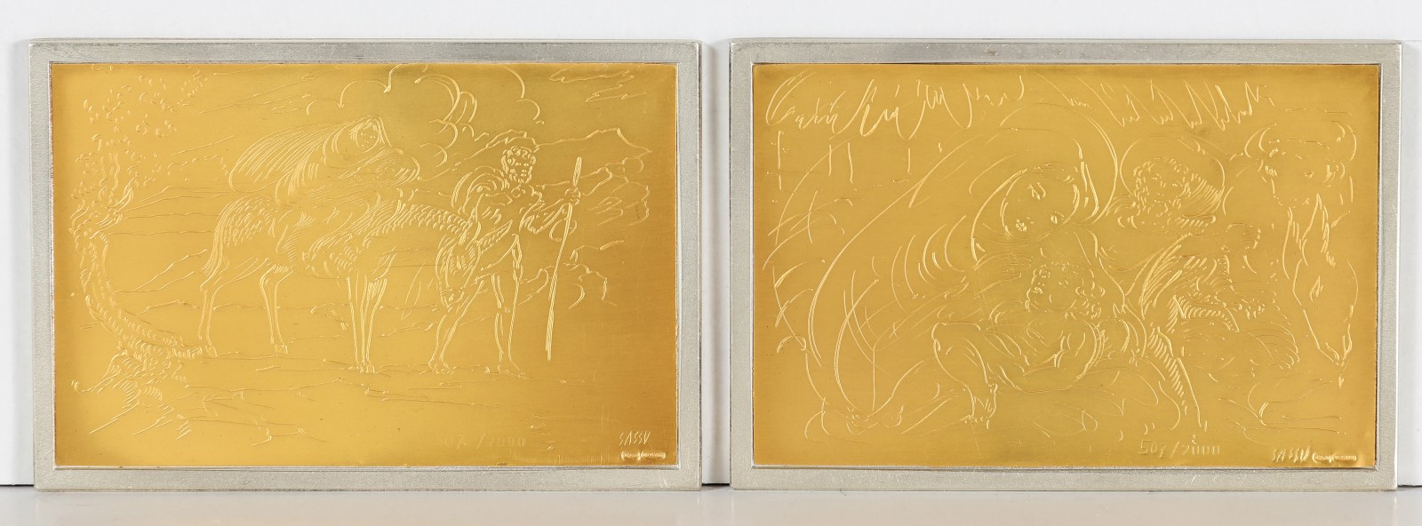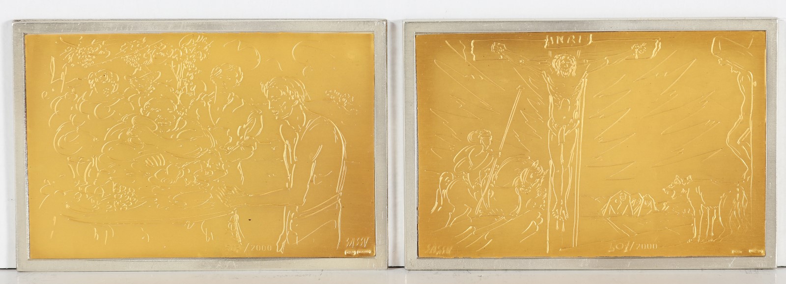 SASSU ALIGI (1912 - 2000) Lotto composto da n.12 placche d'argento con scene bibliche. Argento. . La parte incisa è su foglia d'oro.