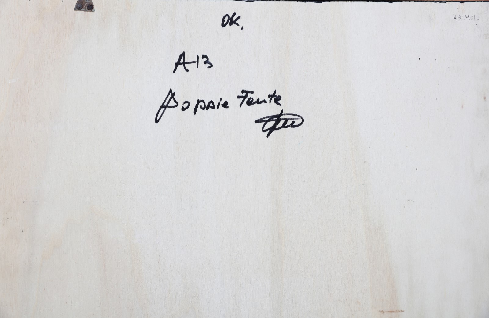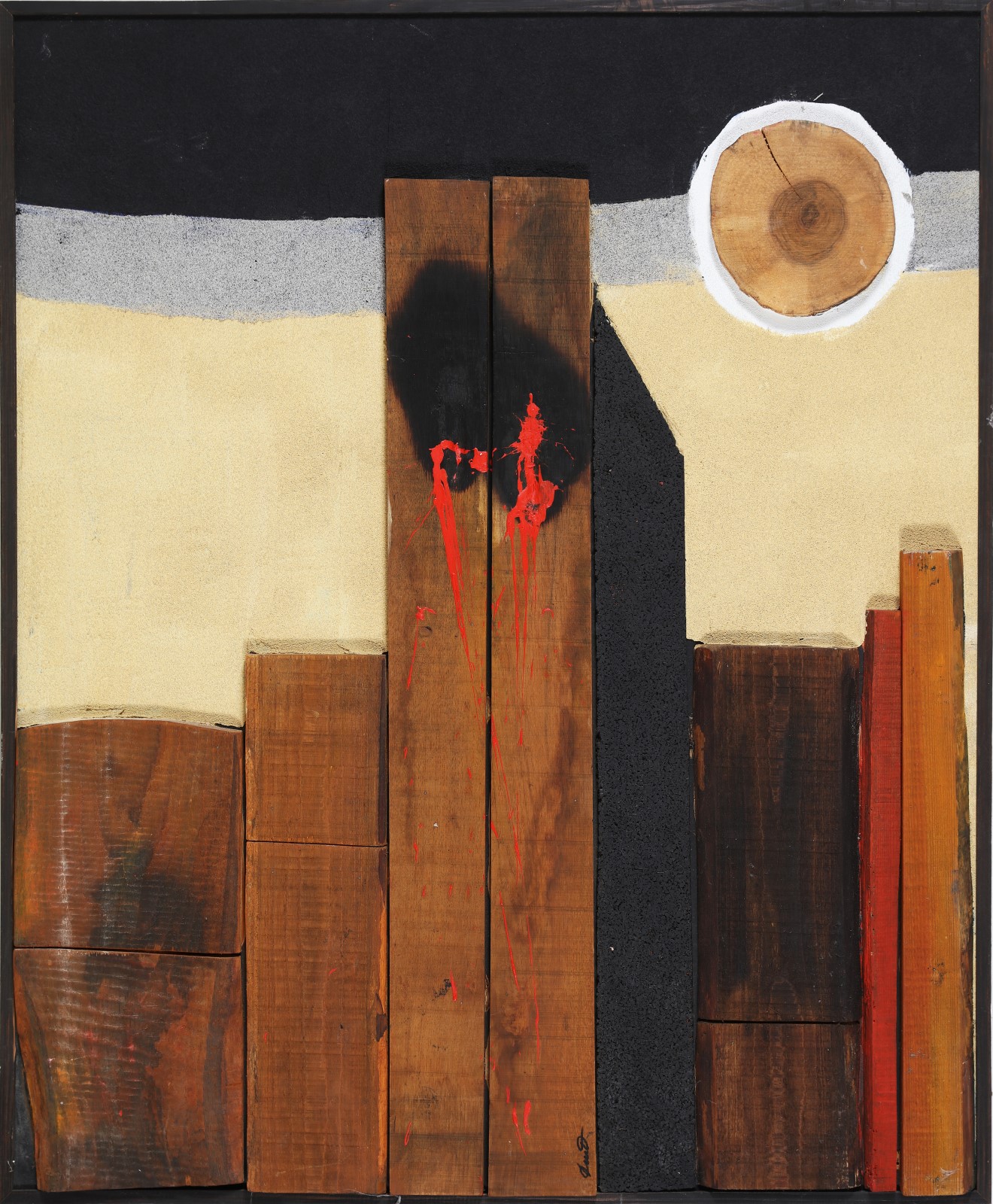 DE LUTTI PIERLUIGI (n. 1959) Doppia Ferita. Tecnica mista su tavola. Cm 92,00 x 113,00. Firma in basso al centro. Al retro titolo e firma. Autentica dell'artista su fotografia.
