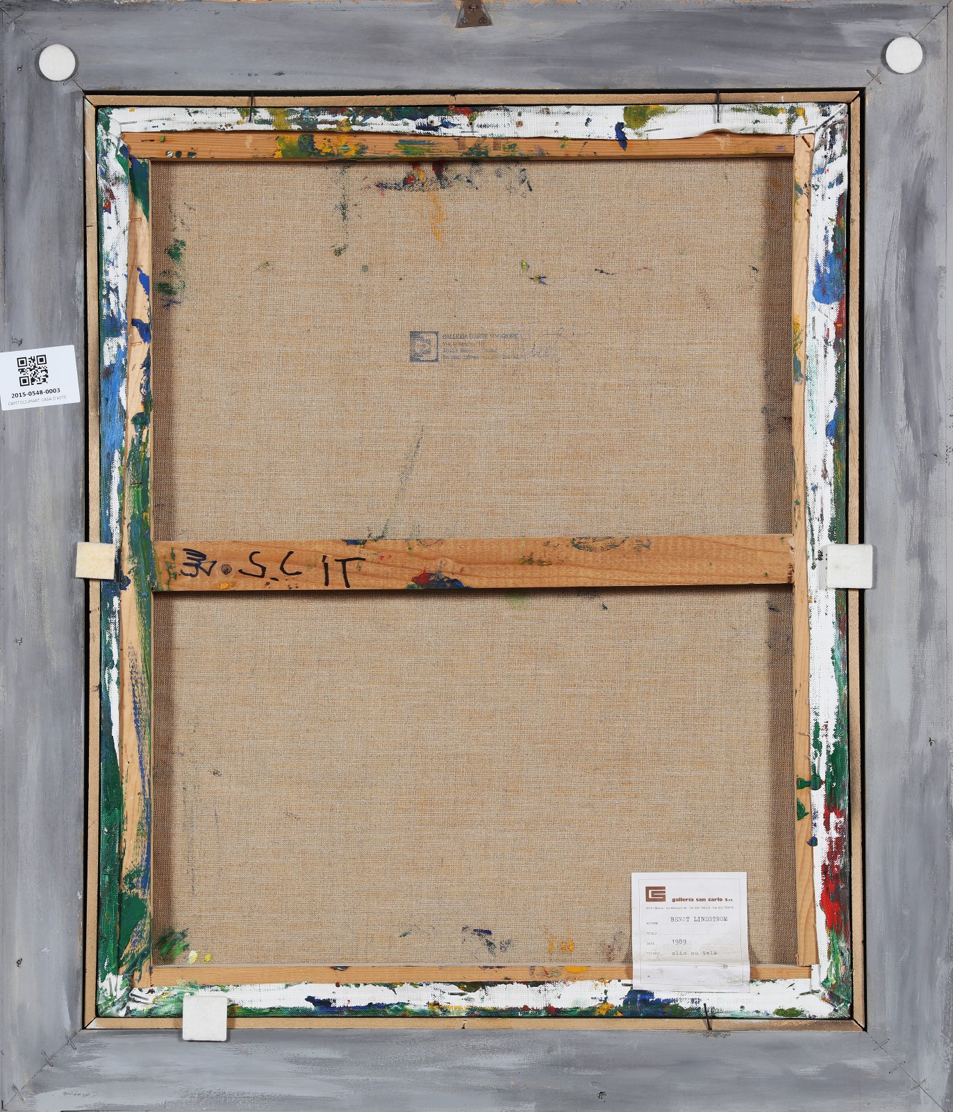 LINDSTRÖM BENGT (1925 - 2008) Senza titolo. 1989. Olio su tela. Cm 50,00 x 61,00. Firma in basso a destra. Al retro cartiglio descrittivo a cura della Galleria d'Arte San Carlo, Milano e timbro a cura della Galleria d'Arte Maggiore, Bologna. Autentica su fotografia della Bengt Lindstrom Foundation of Modern Art firmata da Jan Kron. Autentica a cura della Galleria d'Arte San Carlo, Milano e cartolina della mostra tenuta presso la Galleria D'Arte Maggiore, Bologna nel 1997, riportante l'immagine dell'opera.