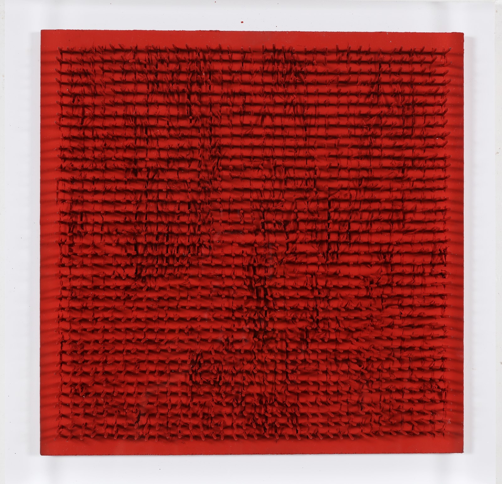 AUBERTIN BERNARD (n. 1934) Tableau Clous. 1970. Chiodi su tavola. Cm 40,00 x 40,00. Al retro firma e anno. Opera archiviata presso l'Archivio opere Bernard Aubertin, Brescia, come da documentazione fotografica allegata all'opera riportante il relativo numero d'inventario. Autentica dell'artista su fotografia.