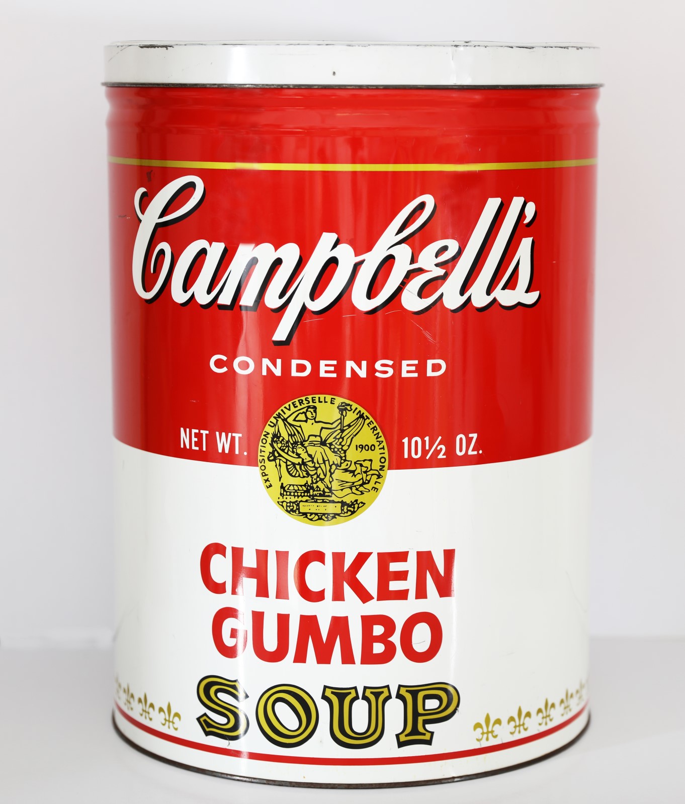WARHOL ANDY (1928 - 1987) Campnell's Chicken Gumbo. Sgabello omaggio a Andy Warhol. 1972. Intervento su lamiera. Cm 30,00 x 44,00. Edizione speciale a tiratura limitata per celebrare i 10 anni del primo dipinto della Campbell's Soup. Manufacturing Co., Chicago, 1972. Presenti segni di usura e cuscino mancante.