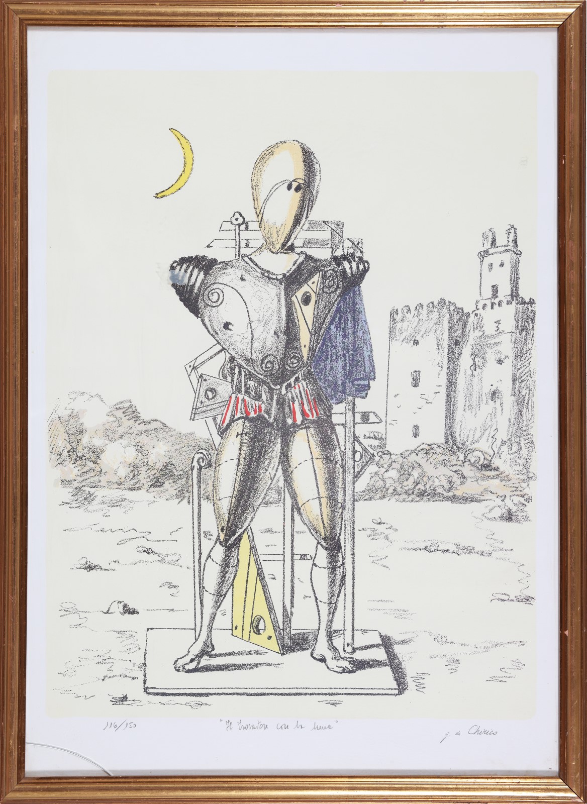 DE CHIRICO GIORGIO (1888 - 1978) Il trovatore con la luna. Lithograph. Cm 50,00 x 70,00. 116/150. Edition, title and signature lower in pencil. Cornice presente