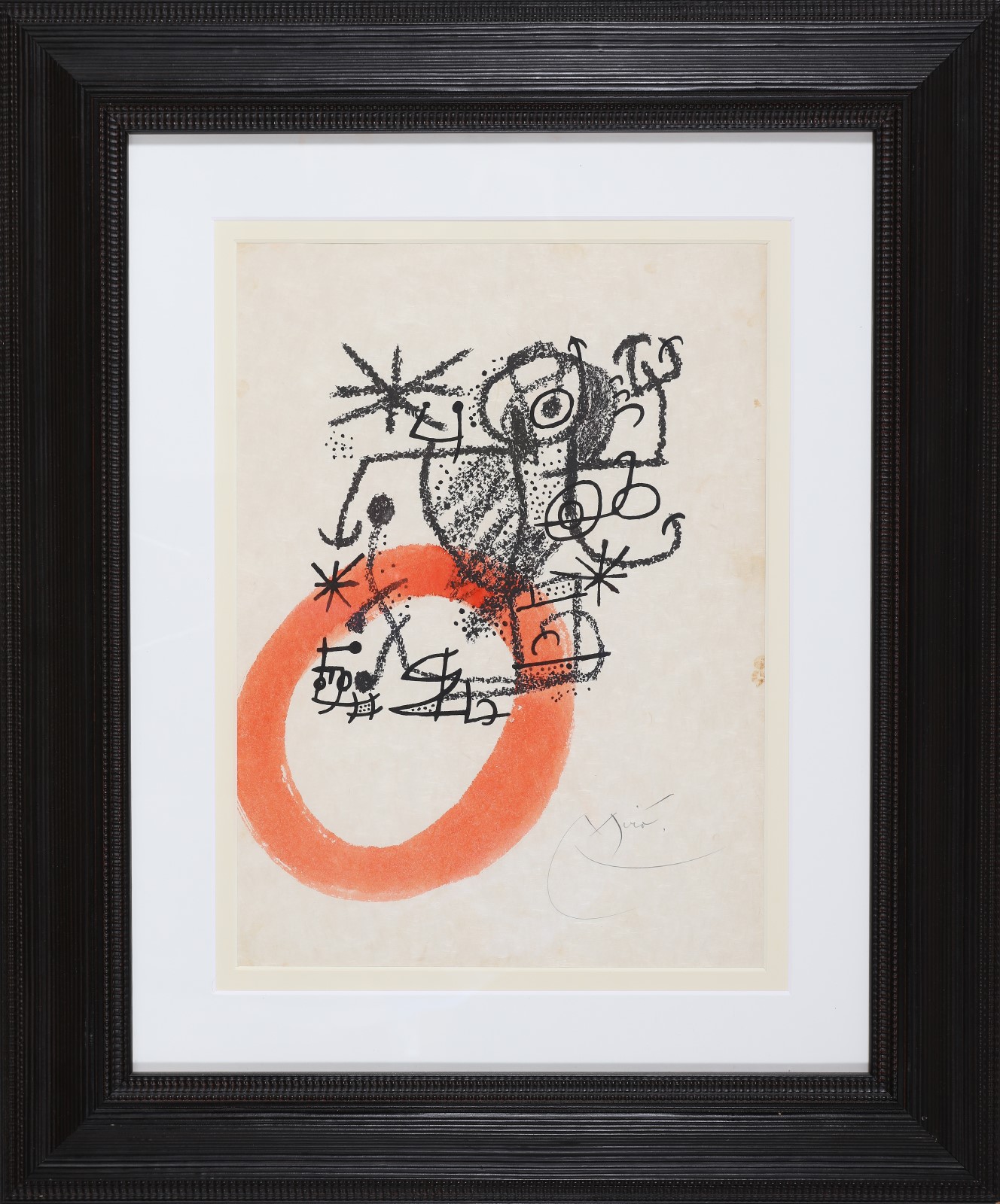 MIRO' JOAN (1893 - 1983) Essence de terre. 1969. Mixed media on paper. Cm 36,00 x 50,00. Signed lower right. Authencity certificate by Jacques Dupin on photo. Cornice presente