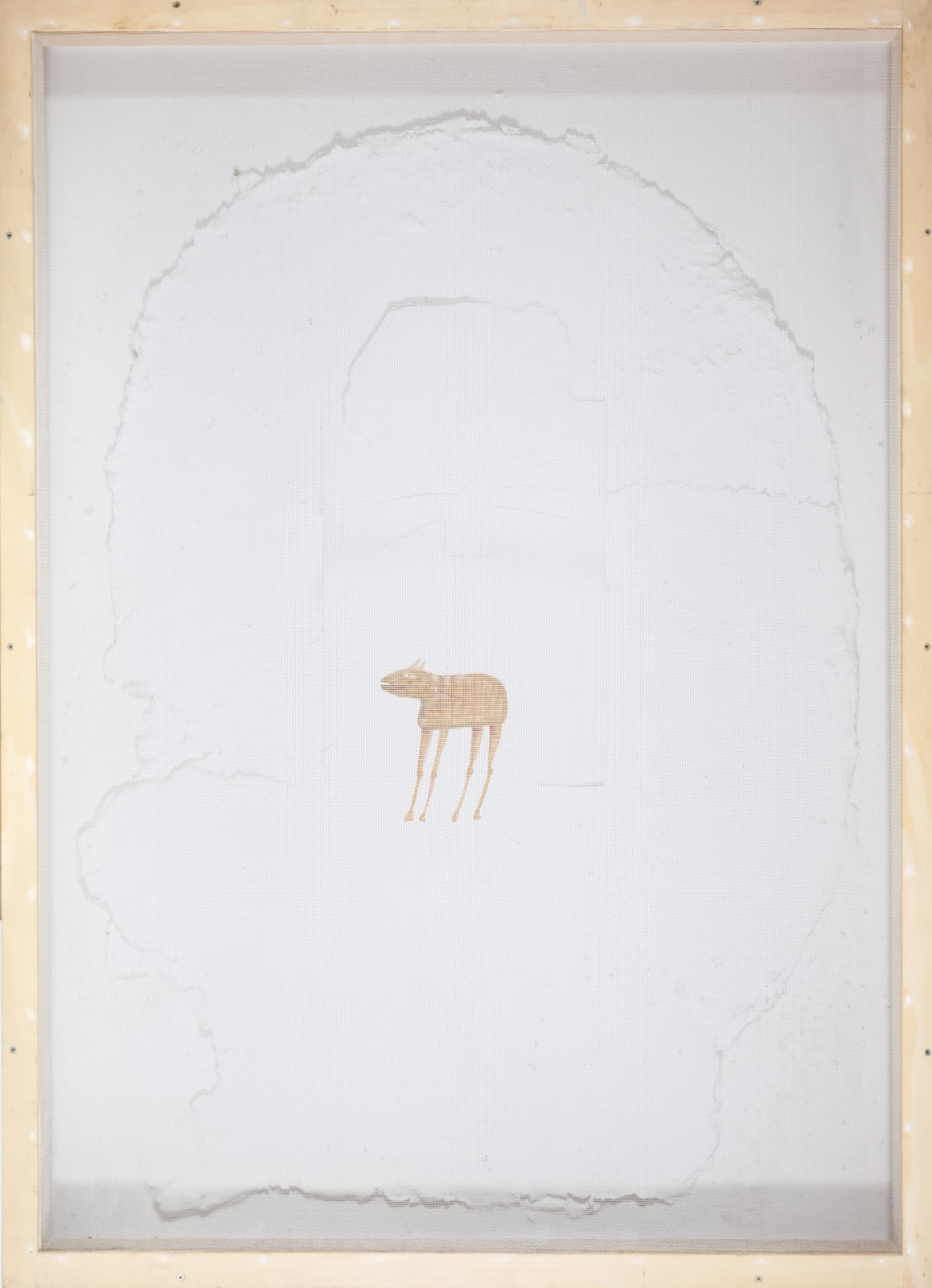 PALADINO MIMMO (n. 1948) Senza titolo. 2000. Tecnica mista su tavola. Cm 80,00 x 110,00. Firma e anno al retro. Pubblicato sul Catalogo Laboratory di Mimmo Paladino, Edizioni Gabriele Mazzotta, in occasione delle mostre tenutesi a Praga dal 19 Ottobre al 16 Novembre 2000 e a Ceske Budejovice dal 28 Luglio al 30 Agosto 2000. Opera pubblicata sul Catalogo d'Asta tenuta presso la Casa d'Aste MeetingArt, Vercelli il 29 Novembre 2003, lotto 144. Cornice presente
