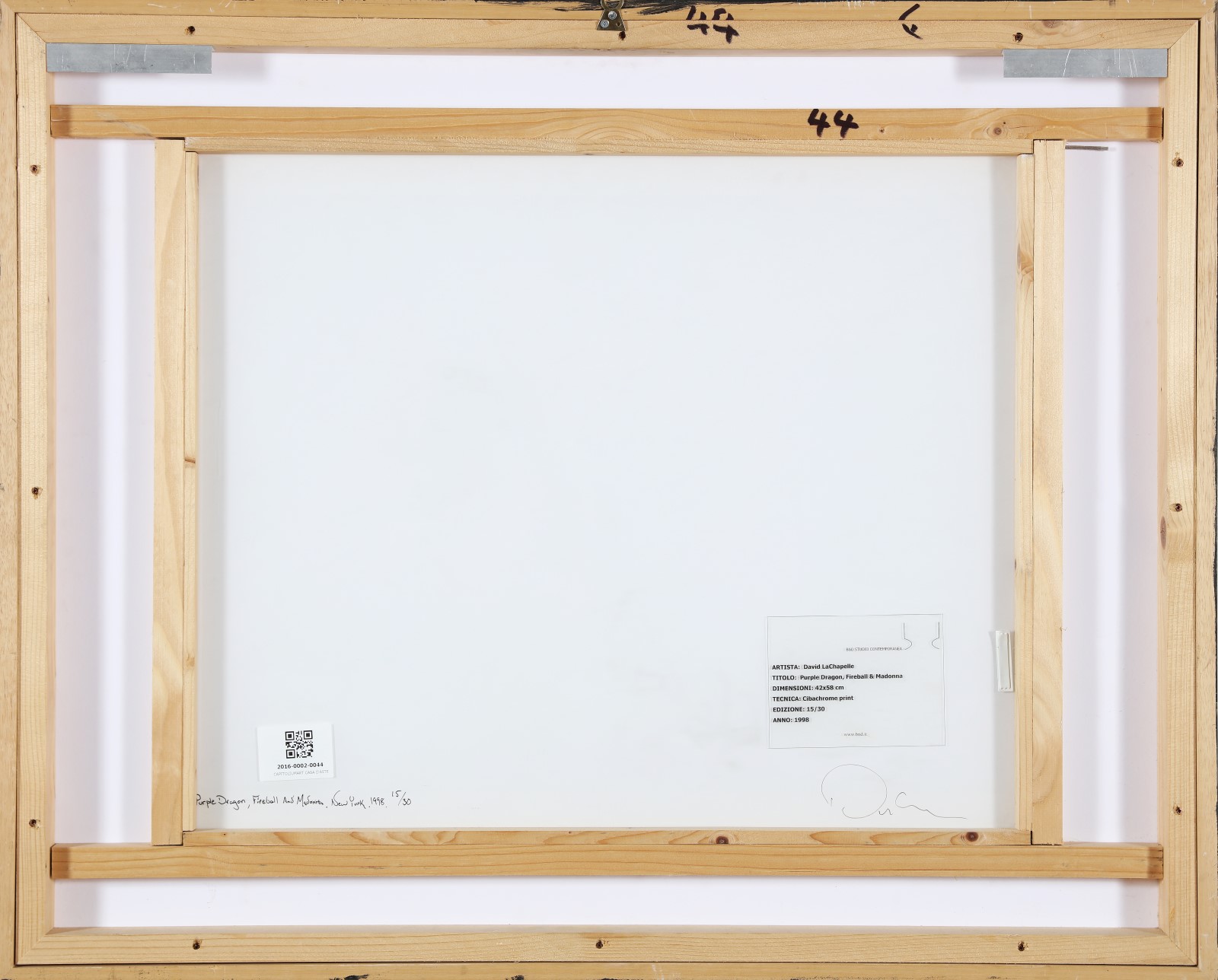 LACHAPELLE DAVID (n. 1968) Purple Dragon, Fireball & Madonna. 1998. C-print. Cm 58,00 x 42,00. 15/30. Al retro tiratura, firma, titolo, anno e cartiglio descrittivo a cura di B&D Studio Contemporanea. Cornice presente