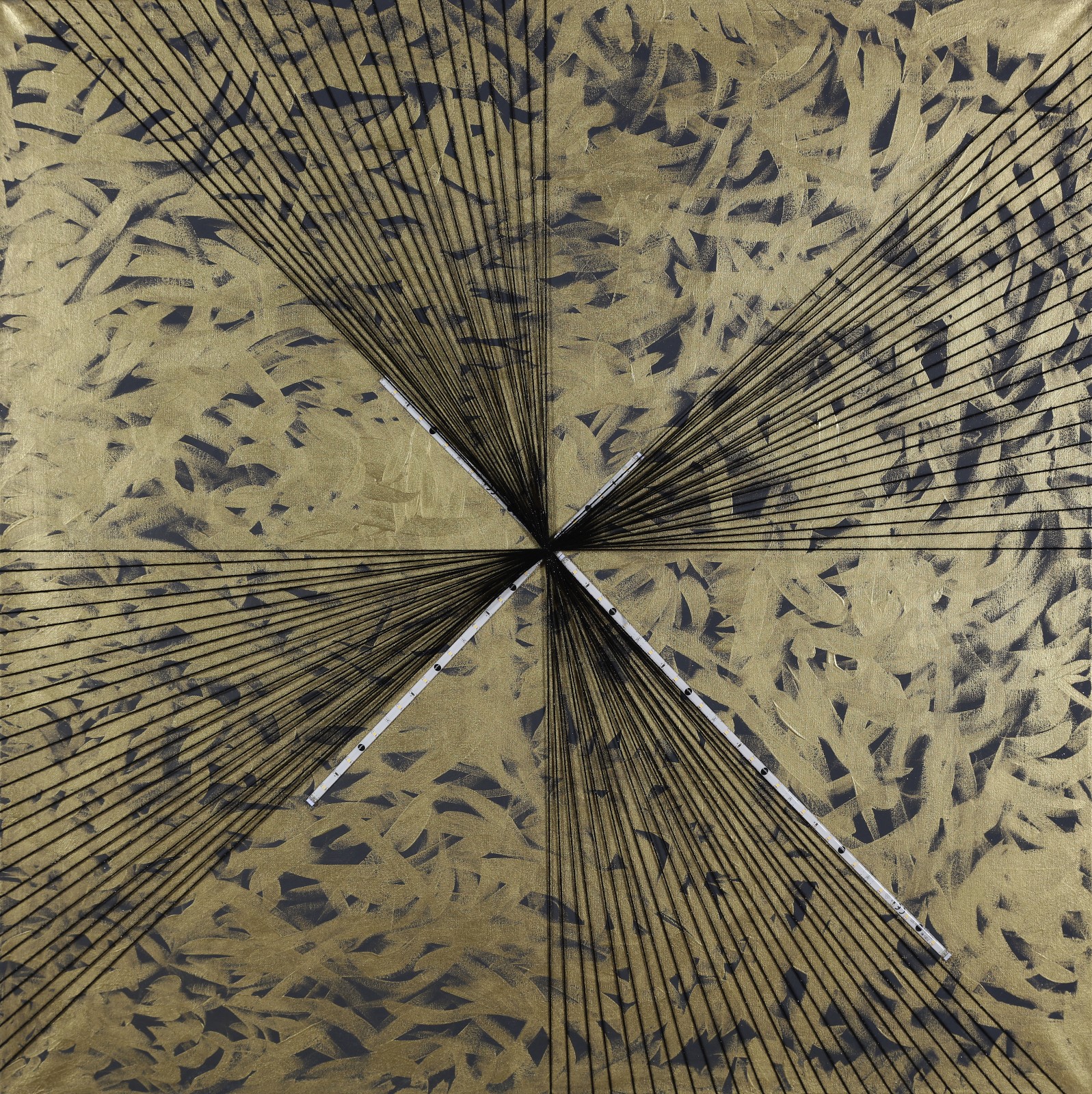 ZANUSO GIORGIA (n. 1985) Razionale follia. 2015. Tecnica mista su tela. Cm 100,00 x 100,00. Al retro titolo, firma e anno.