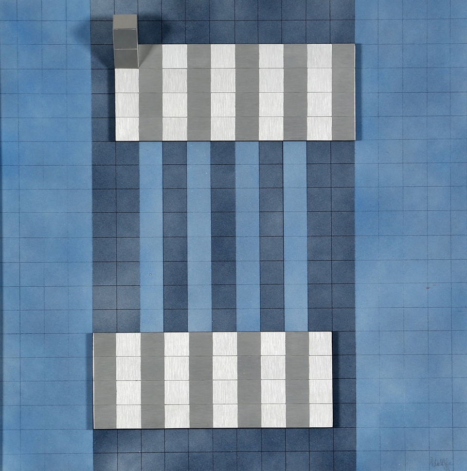 FRANCO DALEFFE 1933, Sequenza, 1975, Tecnica mista e alluminio in rilievo su tavola, cm. 50 x 50 x 4, Firmato e datato sul retro, Prov. Collezione Privata