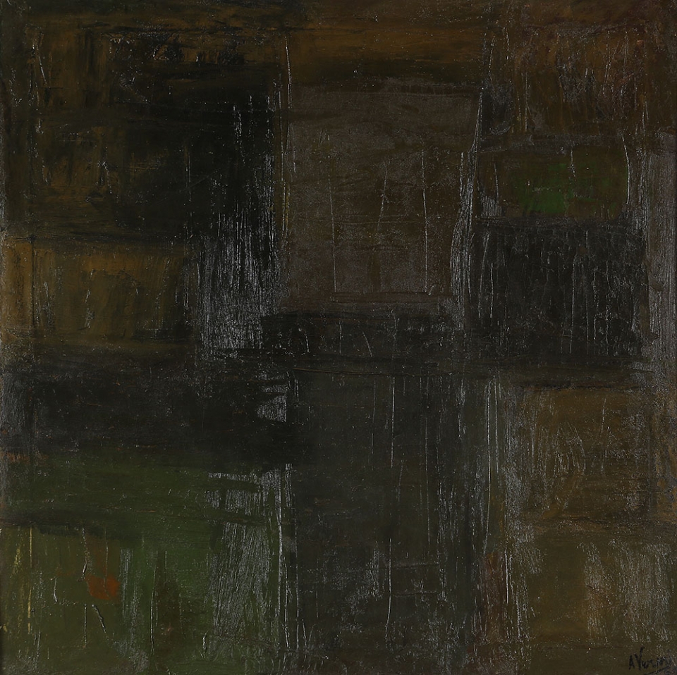 ARTURO VERMI, 1928 - 1988, Arido - Amaro, 1959, Olio su tela, cm. 80 x 80, Firmato e datato sul retro, Prov. Collezione Privata