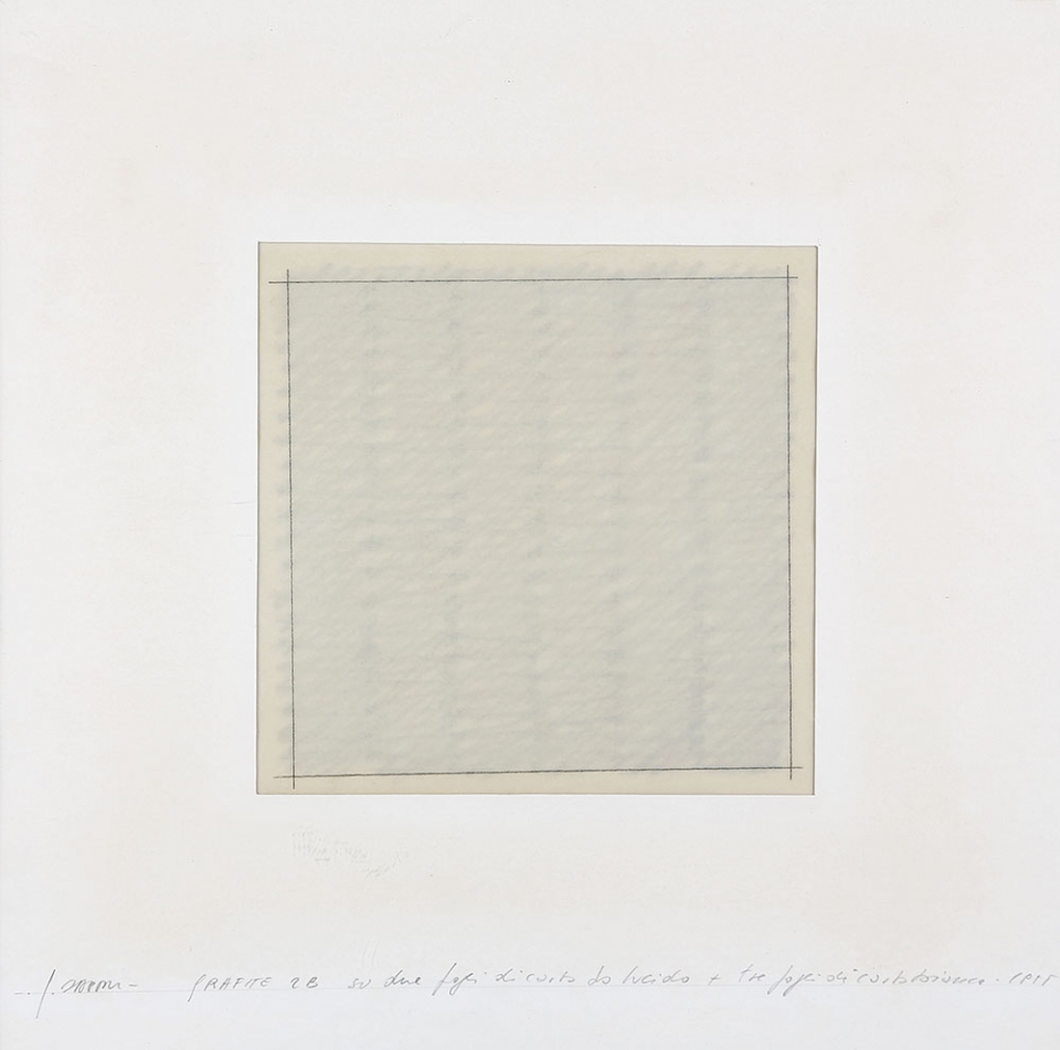GIANFRANCO ZAPPETTINI, 1939, Grafite 2B su 3 fogli di carta da lucido + 2 fogli di cui uno bianco, 1975, Matite e carte sovrapposte, cm. 40 x 40 ( cm. 20 x 20 interno), Firmato e datato in basso a destra, Timbro Artline Amsterdam sul retro, Prov. Collezione Privata