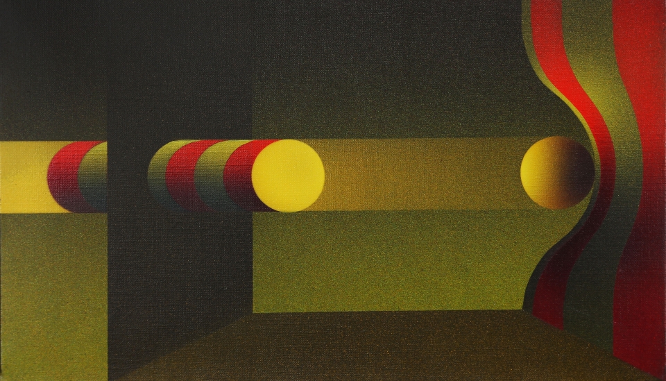 JULIO LE PARC, 1928, Modulation 818, 1986, Acrilico su tela, cm. 27 x 46, Firmato e datato sul retro, Timbro Corniceria e Galleria Artestudio ‘90 Matera su fotografia, Prov. Centro Culturale Verifica 8+1 Venezia, Prov. Collezione Privata