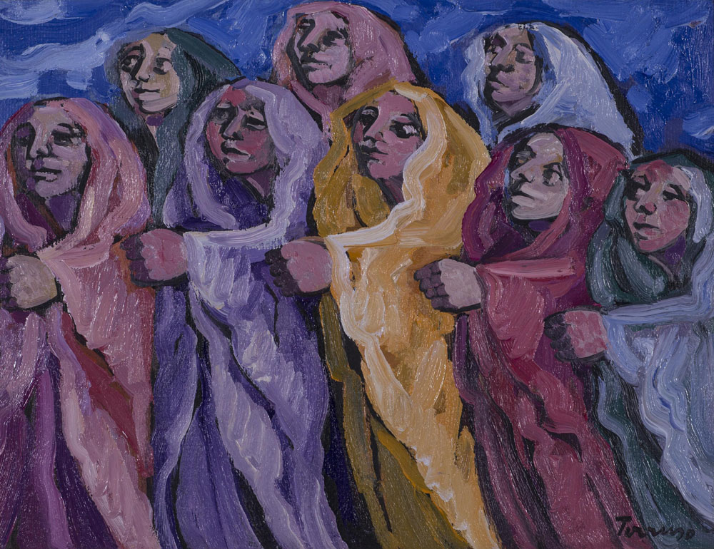 SAVERIO TERRUSO (1939-2003)OrantiOlio su telaCm 30x40Firma al fronteFirma e...