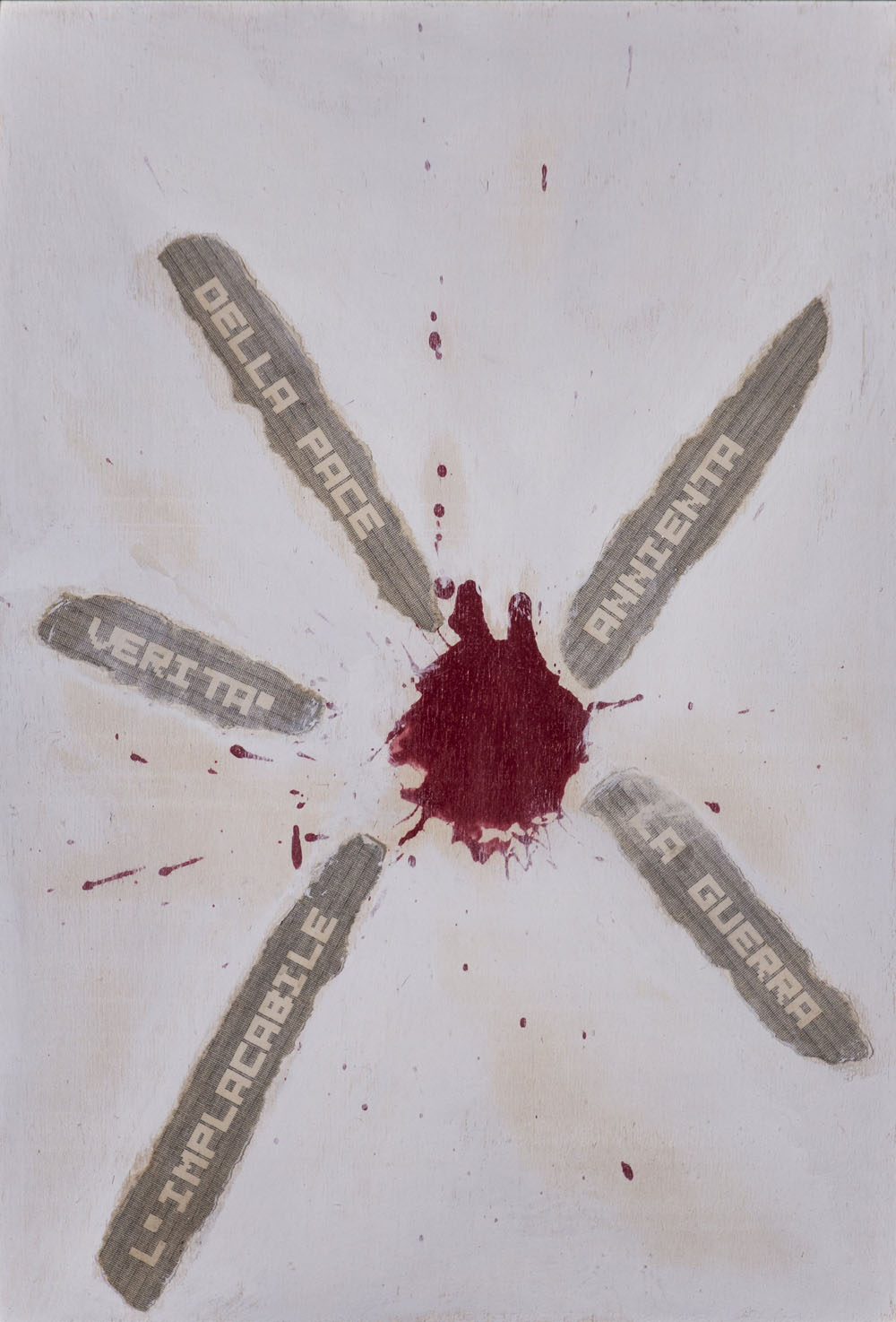 Opera esposta in occasione della mostra "Poesia Visiva" tenutasi nel Febbraio 2011 presso l'Istituto Italiano di Cultura di Cracovia, come da etichetta al retro