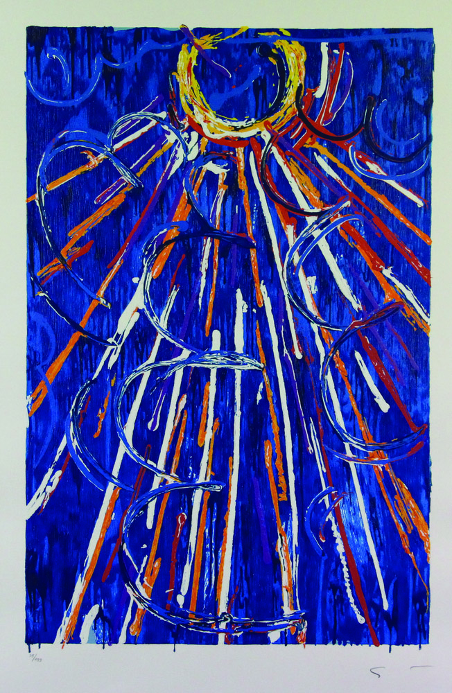 Mario Schifano, Nella Vetrata Blu, 1997, serigrafia materica a smalto su cartas, cm. 100x70, es. 35/199, firmato in basso a destra, certificato di autenticità della Telemarket