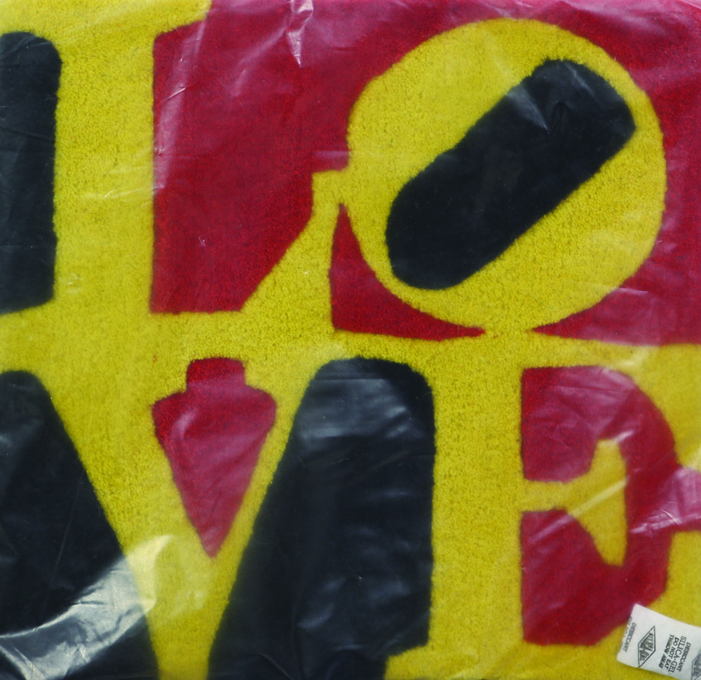 Robert Indiana, Robert Indiana's LOVE RUG, tappetino, cm. 38,1x38,1, etichetta al retro