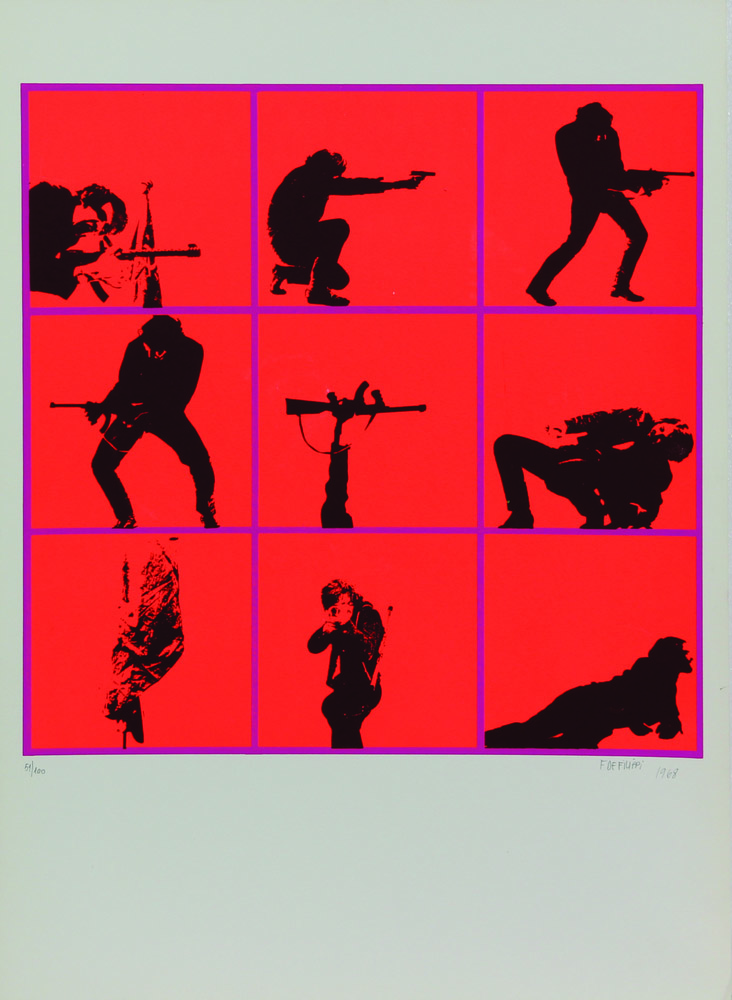 Fernando De Filippi, Senza titolo, 1968, serigrafia su carta, cm. 70x50, es....