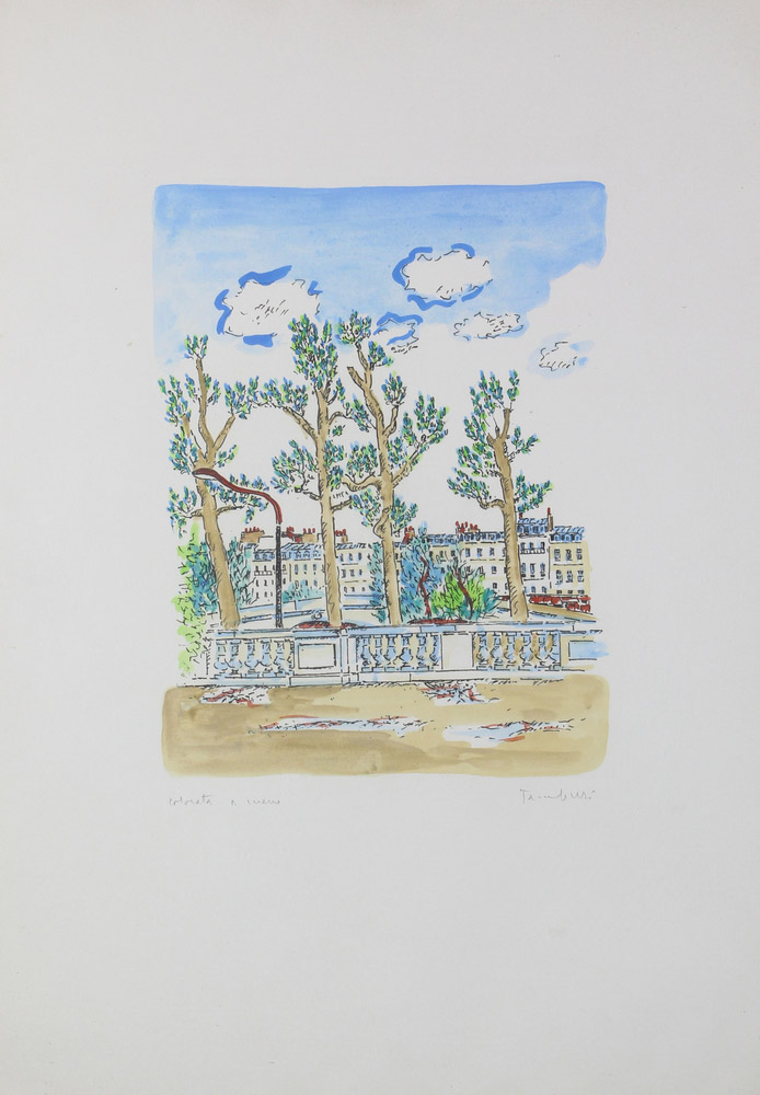 Orfeo Tamburi, Senza titolo, acquerello su base litografica, cm. 70x50,...