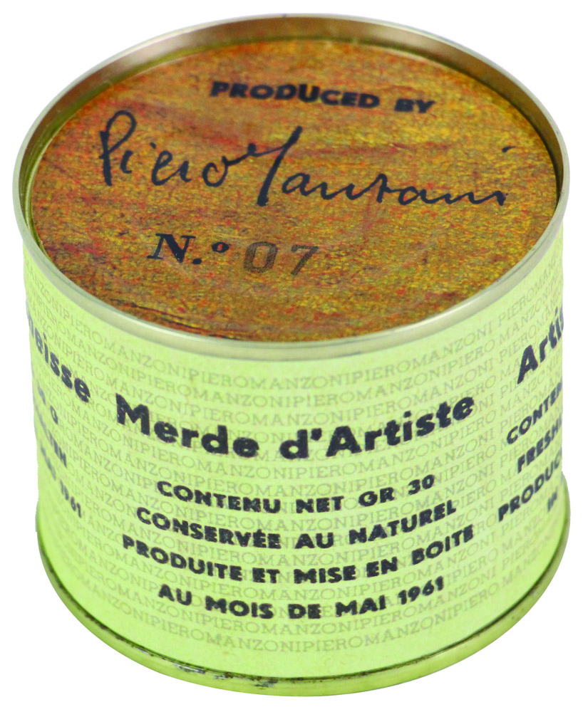 Piero Manzoni, D'apres. Merda d'artista, 2013, latta, cm. 7,50x6x7,50, es. 04, firmata a stampa, Merda d'Artista dell'anniversario 2013, Prodotta e inscatolata da: Fondazione Piero Manzoni, Milano, l'opera presenta un'ammaccatura
