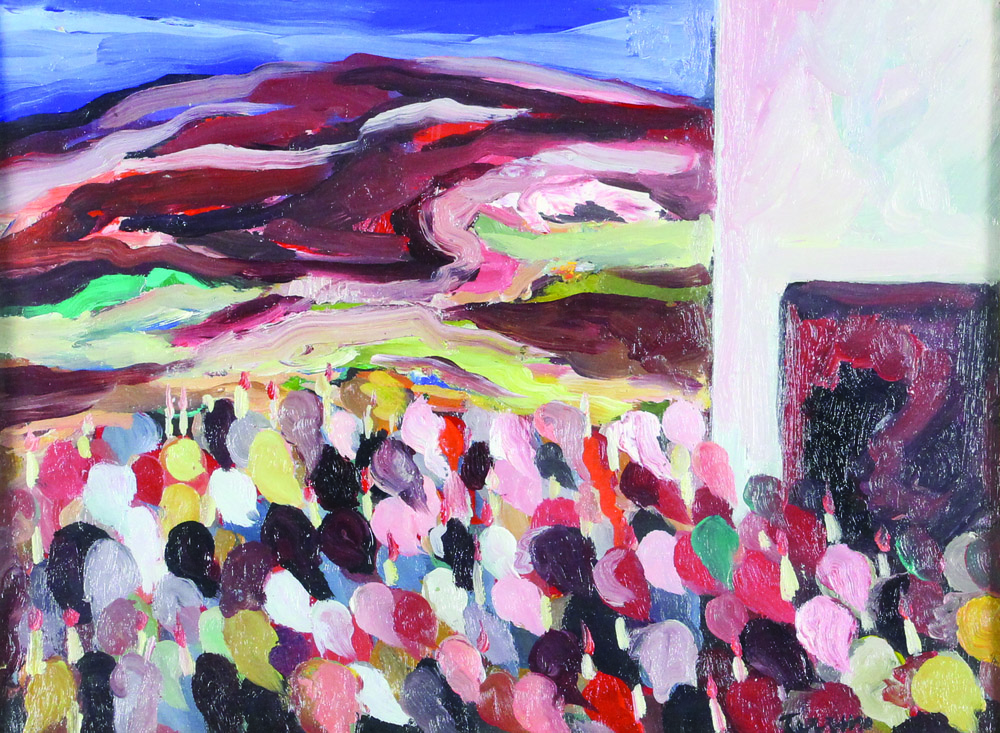 Saverio Terruso, Processione Verso il Paese, olio su tavola, cm. 30x40,...