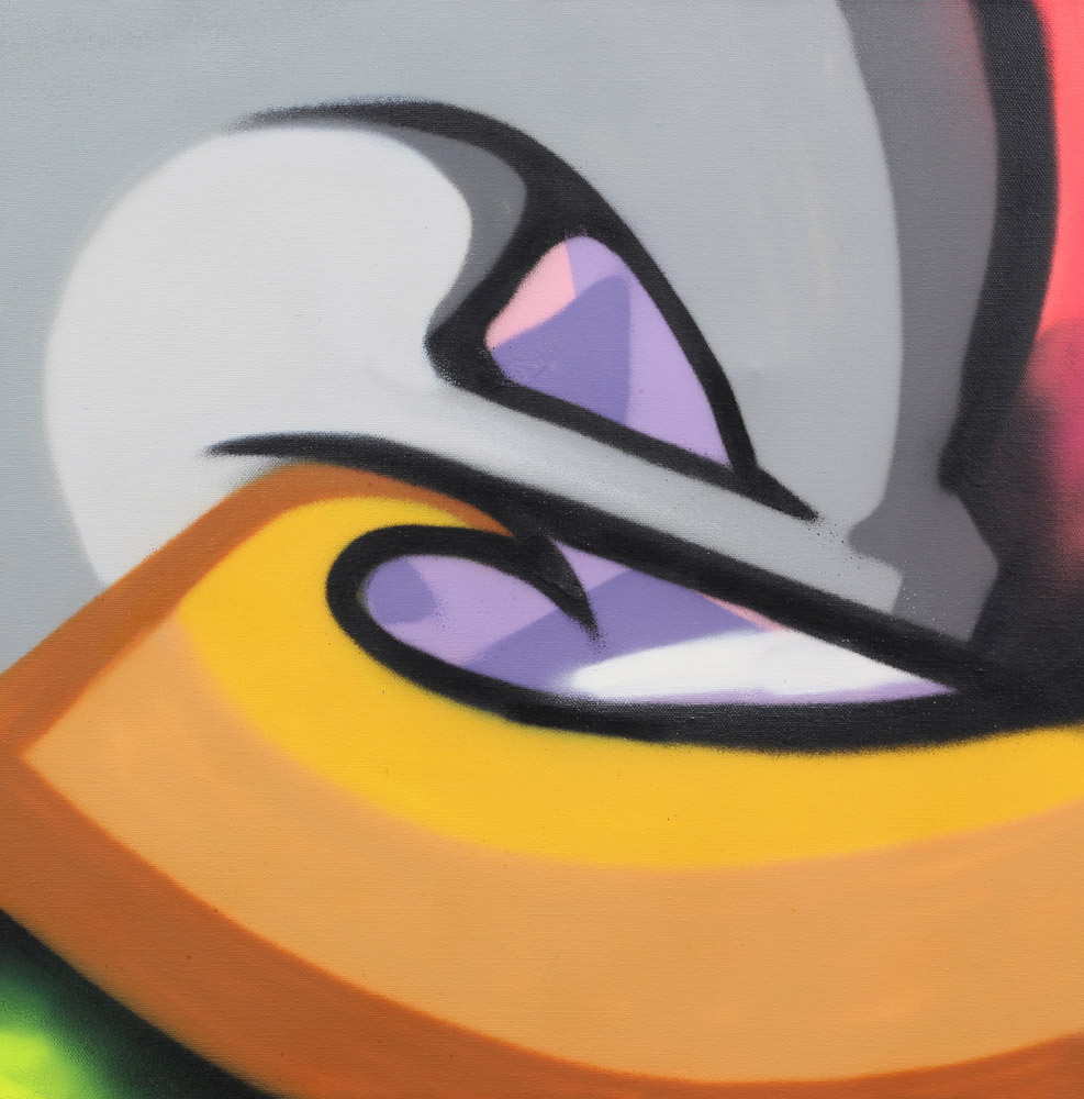 Sklero, TDK, 2012, acrilico spray su tela, cm. 66,5x61, firmato al retro, certificato di autenticità dell'artista su fotografia