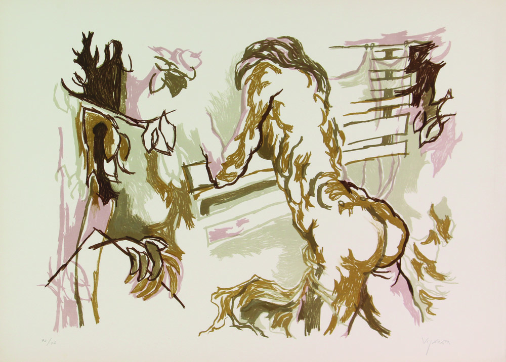 Antonietta Viganone, Mutevole cromatico. Nudo femminile di schiena, 1980, litografia su carta, cm. 50x70, es. 72/75, firmata in basso a destra, Franco Sciardelli Editore, senza cornice