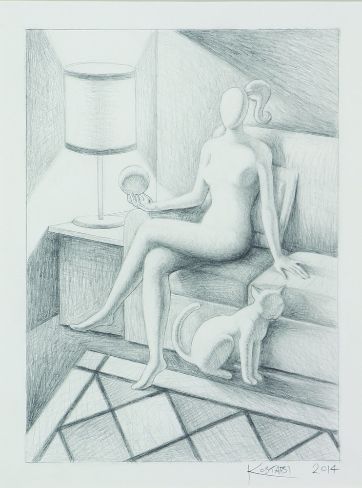 Mark Kostabi, Your Future for a Small Fee, 2014, grafite su carta, cm. 29x22, firmata e datata in basso a destra, firmata, intitolata e datata al retro