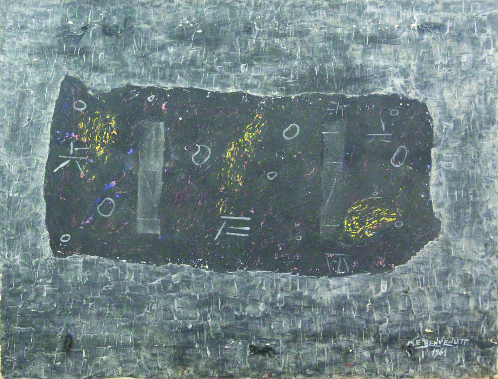 Mario Enrico Benvenuti, Accettazione Primitiva, 1961, olio su tela, cm. 70x90, firmato, intitolato e datato al retro, senza cornice