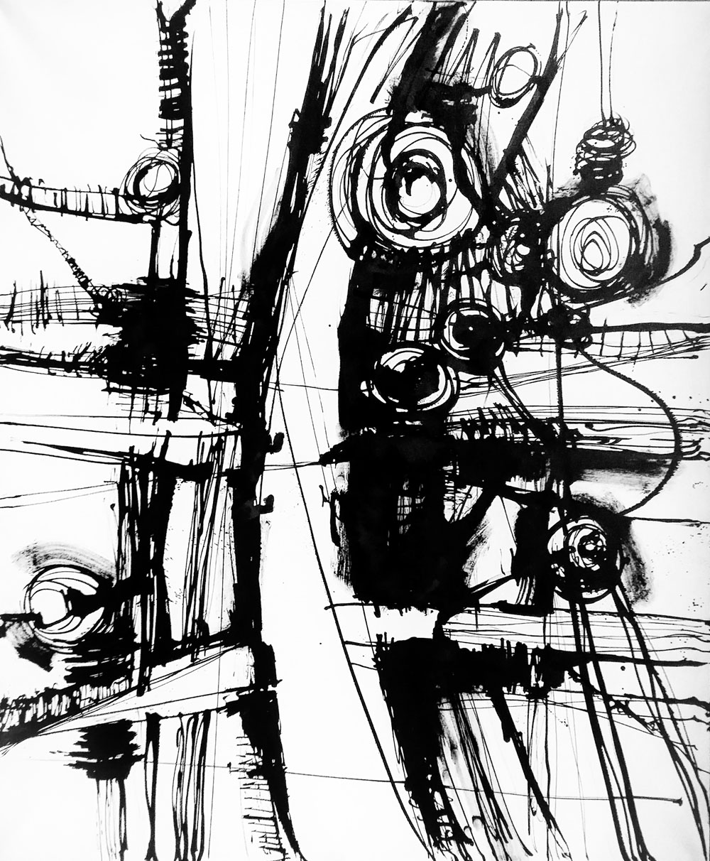Eleonora Prado Milano 1981 Cavi al confine tra Laos e Cambogia 2015 Inchiostro indiano su tela 120x100 Certificato di autenticità