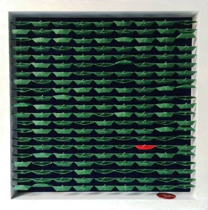 Ruggero Jerry Bogani Milano 1965 Evergreen 2015 Barchette di carta da lucido 37,5x37,5 Certificato di autenticità