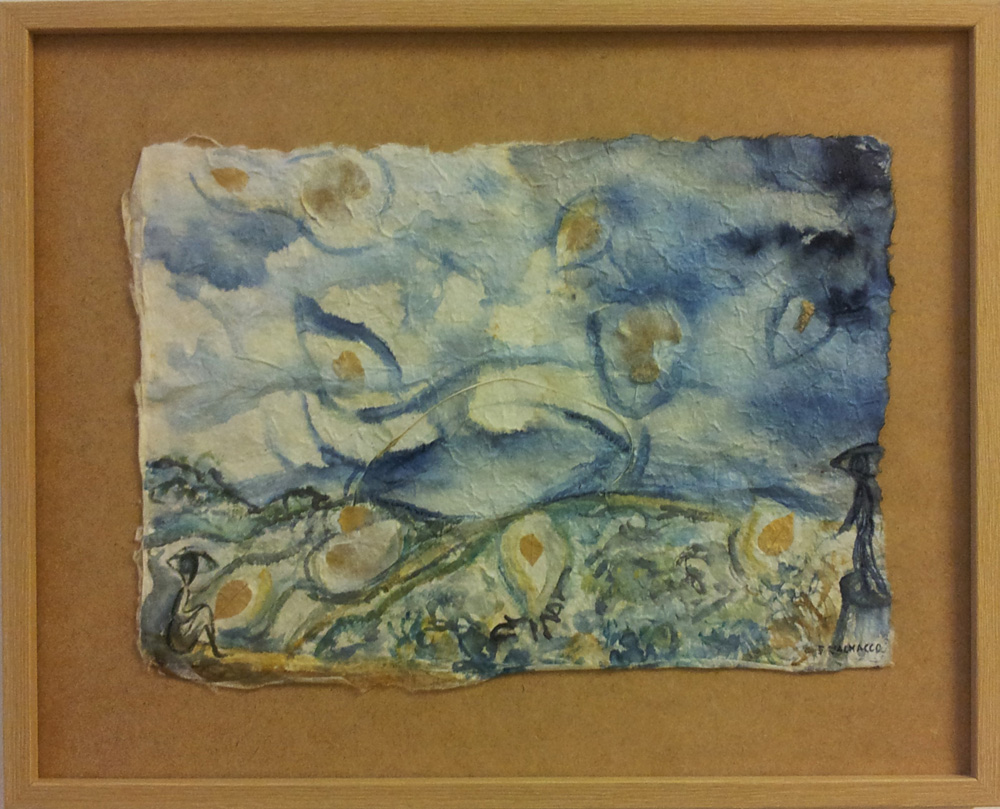 SARA VALMACCO VERCELLI 1976 L'imprevedibilità della pioggia 2015 tecnica mista su carta fatta a mano con inclusione di foglie e fibre vegetali 40x50 Certificato di autenticità