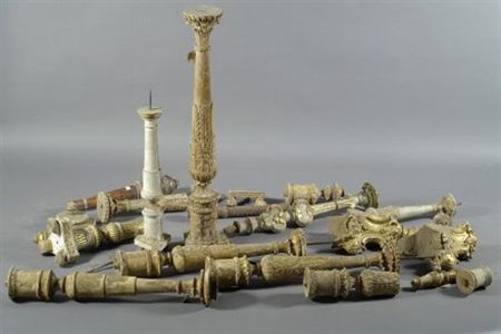 Gruppo di portaceri in legno intarsiato e dorato di varie forme ed epoche.