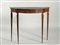 Consolle listrata in noce, piano sagomato, un cassetto sulla fascia, gambe a...