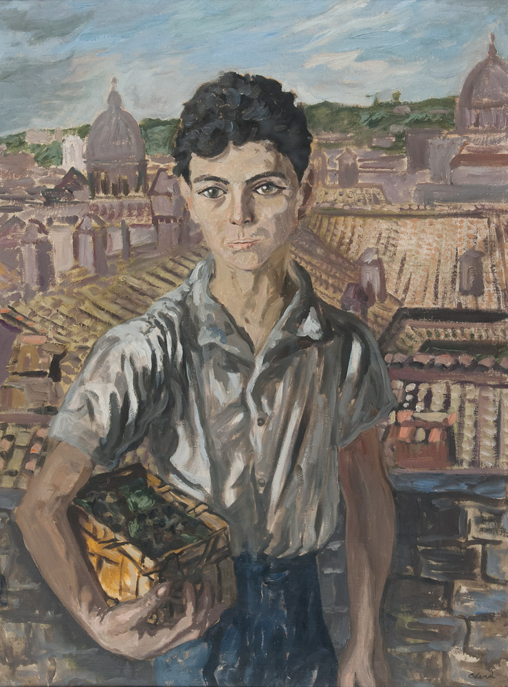 CARLO LEVI (Torino 1902 - Roma 1975) Ragazzo romano Olio su tela, cm. 101 x 73 Firma in basso a destra Firma, dedica e timbro al retro PROVENIENZA Galleria La Barcaccia, Roma