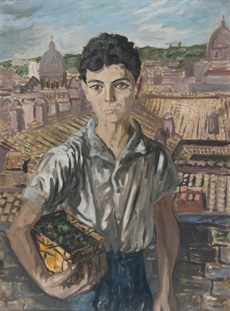 CARLO LEVI (Torino 1902 - Roma 1975) Ragazzo romano Olio su tela, cm. 101 x...