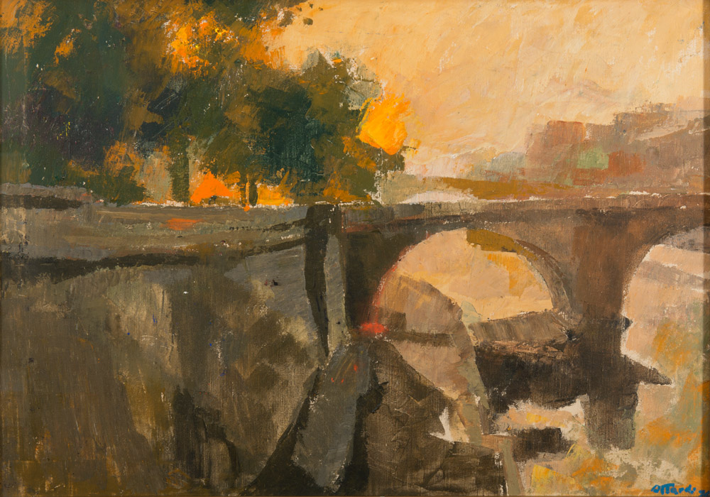 UGO ATTARDI (Sori di Genova 1923 - Roma 2006) Lungotevere, 1996 Olio su lino, cm. 50 x 70 Firma e data in basso a destra