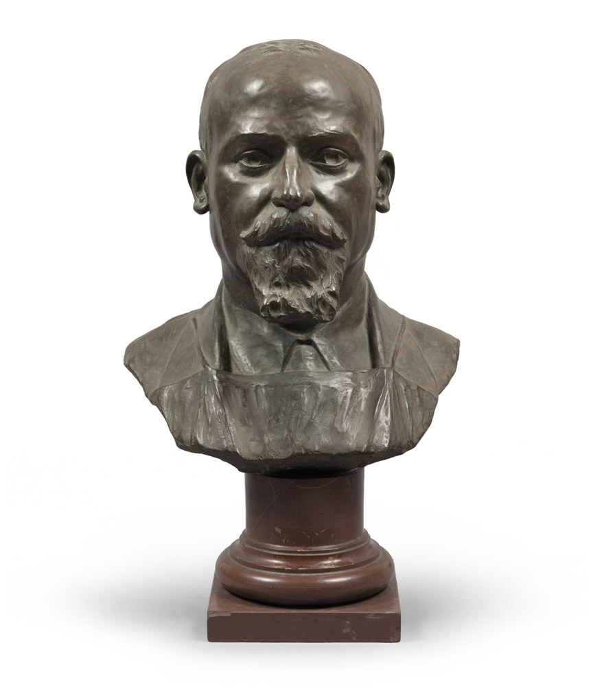 ADOLFO PANTARESI (Roma 1830 - 1927) Ritratto di uomo, 1913 Bronzo, cm. 40,5 x 35 x 25 Firma e data sulla spalla sinistra Base in marmo