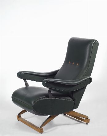 Poltrona rivestita in pelle verde con schienale reclinabile