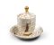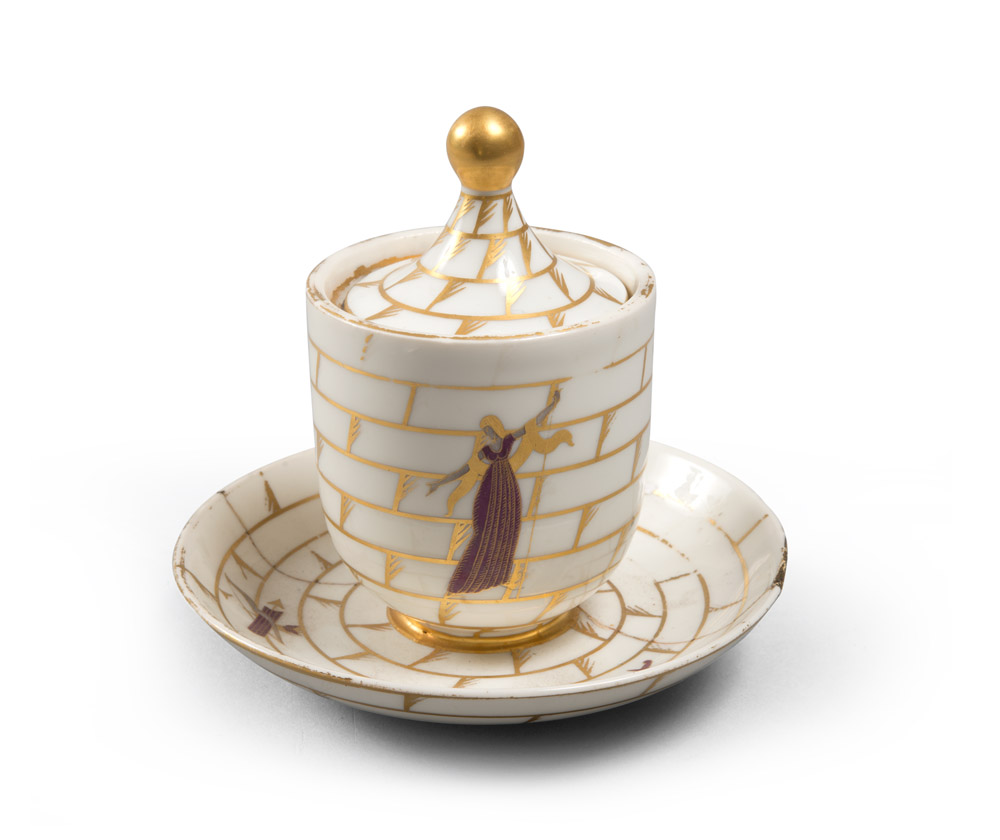 CREMIERA IN PORCELLANA 1925 Gio' Ponti - Richard Ginori porcellana bianca decorata in viola, grigio e oro. Marchi della manifattura e firma alla base Misure cm. 11,5 x 13 Rotture al piatto
