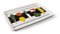 GUERRINO TRAMONTI (Faenza 1915 - 1992) Natura morta, 1962 Piatto in terracotta dipinta con smalti Misure, cm. 65 x 31,5 x 5 Firma sul fondo Rottura restaurata al bordo