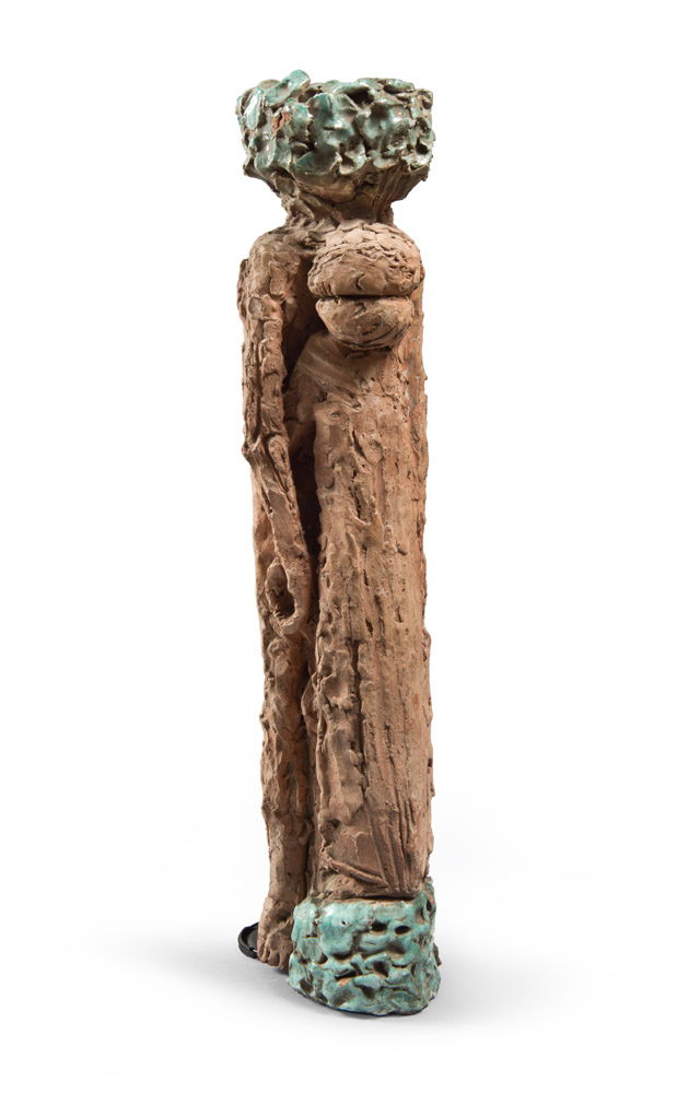 CORRADO RUFFINI (c.1910 - 1979) Pietà, anni '50 Terracotta e ceramica policroma, cm. 73 x 16 x 16 Firma su retro