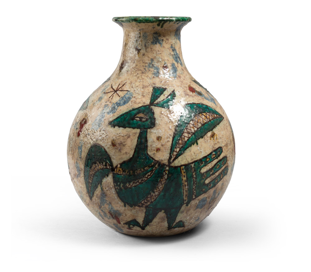 GUERRINO TRAMONTI (Faenza 1915 - 1992) Grande vaso, anni '50 Terracotta dipinta e smaltata con pavoni Misure, cm. 42 x 35 Mancanze del fondo