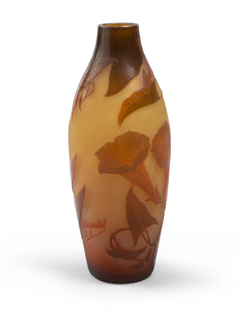 VASO IN VETRO D'ARGENTAL con decori floreali e foglie di datura, decorazioni...