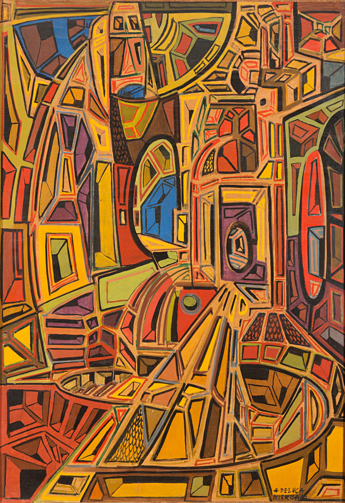MIRKO BASALDELLA (Udine 1910 - Cambridge Massachusetts 1969) Composizione, 1950 Tempera su carta applicata su tela, cm. 101,5 x 70 Firma in basso a destra PROVENIENZA Collezione privata, Roma