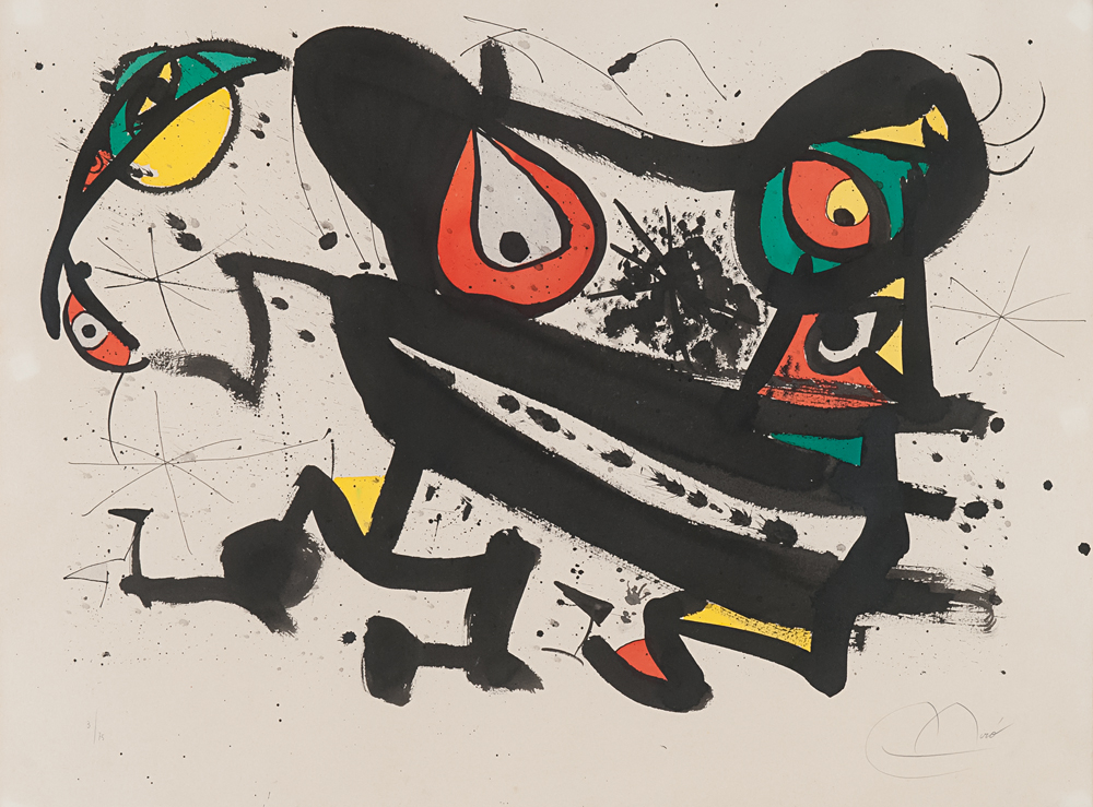 JOAN MIRÒ (Barcellona 1893 - Palma di Maiorca 1983) Senza titolo Litografia a colori, ex 3/75 Misure della lastra, cm. 50 x 65,5 Firma in basso a destra