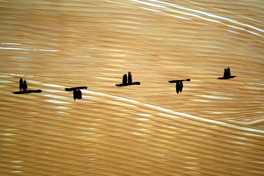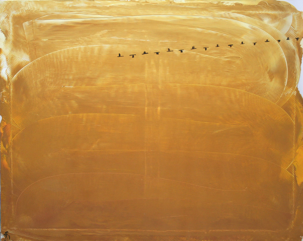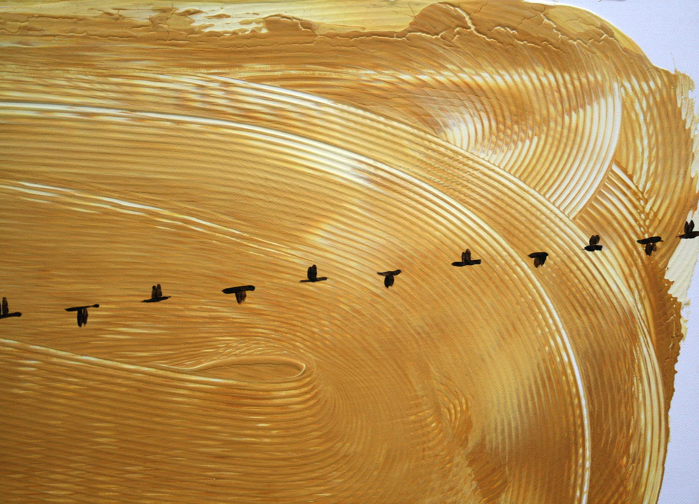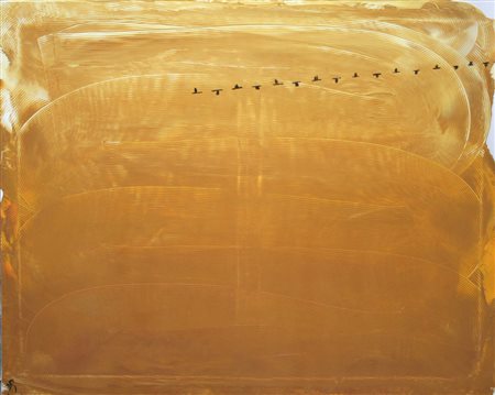 Davide Prudenza 1962, Fidenza (Pr) - [Italia] Migrazione mista su tela 80x100 cm 2013 firma dell’artista in basso a sinistra certificato di provenienza garantita Picenum