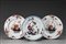 Tre piatti in porcellana Imari, decorati con motivi floreali in blu e rosso...